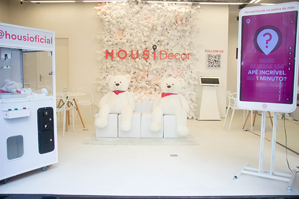 Saem os flamingos e entram os ursos brancos, já adotados como xodó da Housi. Serão centenas de ursinhos empilhados atrás da cama para que os visitantes possam tirar suas fotos, terem uma experiência diferente, e ao mesmo tempo se aproximarem mais da marca. O espaço vai contar com uma máquina de ursinhos e aqueles que participarem da ação sugerida ganham uma ficha para usar no local e, quem sabe, levar um mascote pra casa.