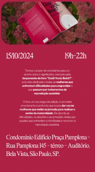 Dos caros e demorados tratamentos, passando por dificuldades nos relacionamentos amoroso e familiar, sem deixar de falar sobre os riscos para a carreira profissional, dra. Liliana trata de todos os desafios que envolvem a infertilidade e a reprodução assistida no livro Cadê Você, Bebê?, que chega a sua segunda edição. Todo o lucro obtido na venda dos livros será́ destinado a auxiliar o pagamento do tratamento de reprodução assistida de mulheres tentantes.
