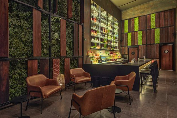 O amplo ambiente projetado por Otavio de Sanctis é elegante e sofisticado, com predominância de elementos naturais como madeira, pedra e água. O espaço é dividido em salão principal com sushi bar; deck com teto retrátil; mesa do chef; bar para espera; e mezanino para eventos. A decoração ficou sob a tutela de Selma de Sá, do Studio SA Arquitetura.