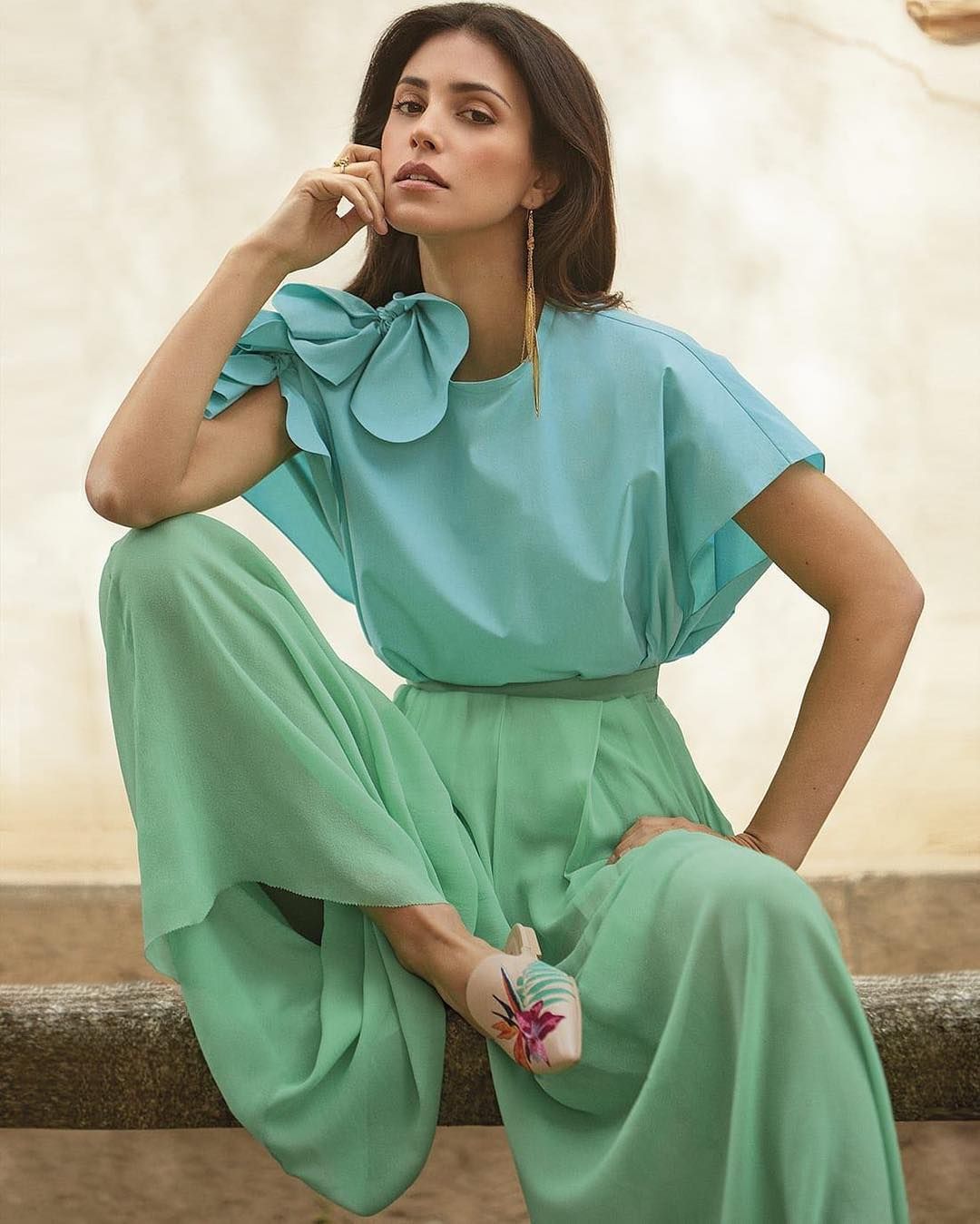 Para quem quer fugir do clássico e ousar, o look monocromático também é uma ótima escolha. Cores vibrantes como o vermelho, o amarelo ou o verde podem ser usadas em diferentes nuances para criar um visual alegre e moderno. Um vestido midi em um tom de verde esmeralda, combinado com sapatos e acessórios em verde menta, por exemplo, resulta em um look divertido e cheio de personalidade, perfeito para um almoço com amigos ou uma festa durante o dia.