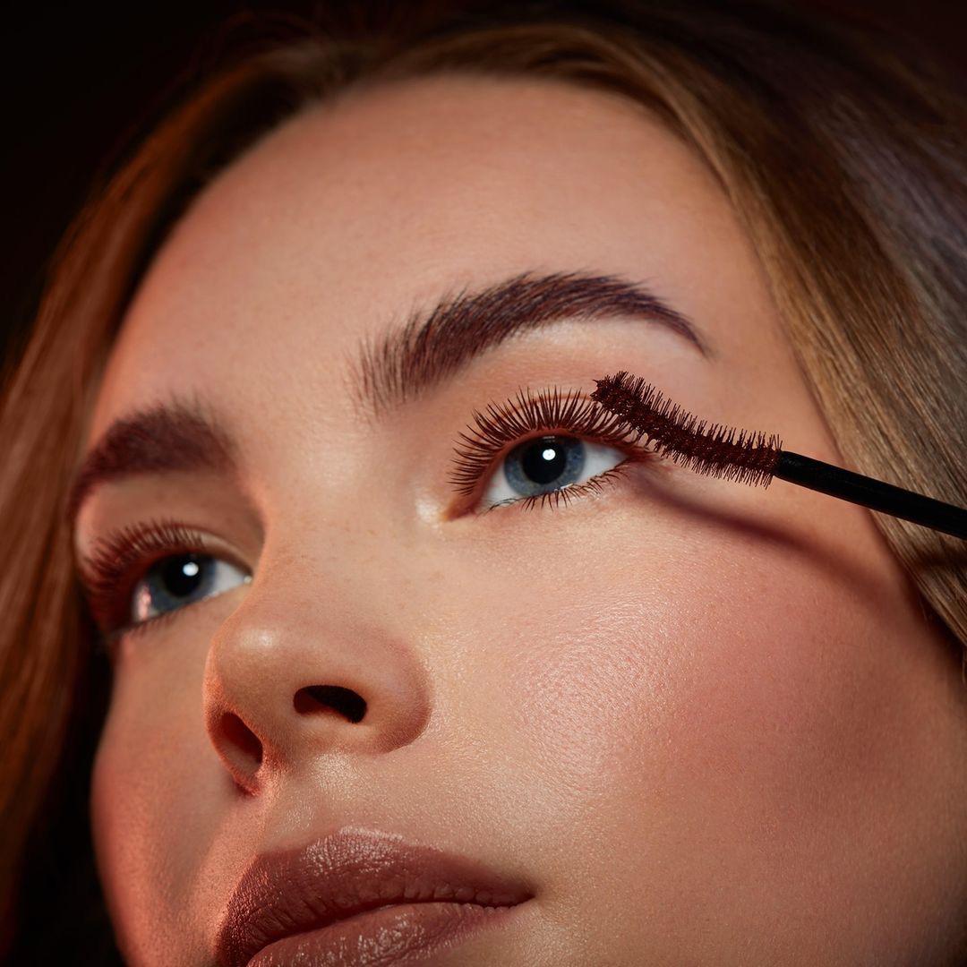 A grande sacada dessa máscara é como ela realça os olhos sem pesar. Nos olhos castanhos, a tonalidade cherry cria um contraste elegante, destacando os reflexos dourados e dando um toque de sofisticação ao olhar. Já para quem tem olhos claros — sejam verdes, azuis ou mel — o efeito é ainda mais impressionante: a cor cria um jogo de luzes que ilumina o olhar, deixando-o vibrante e cheio de personalidade.