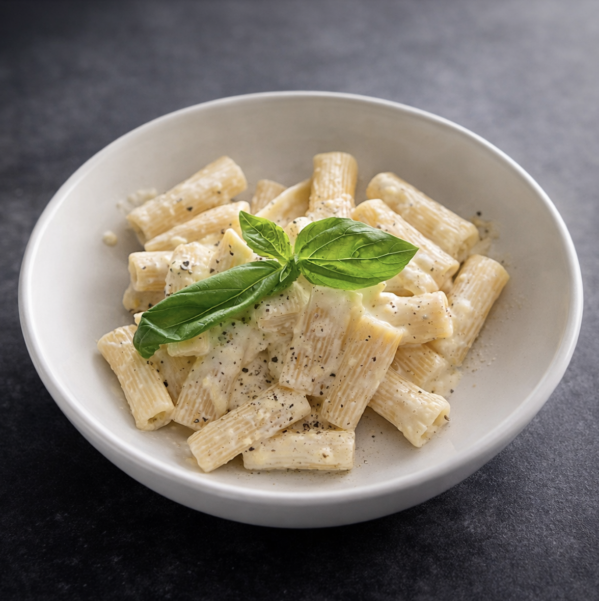 *Rispetto! (Rigatoni + Carbonara com guanciale de verdade + + Manjericão Fresco + Pimenta preta)- R$54