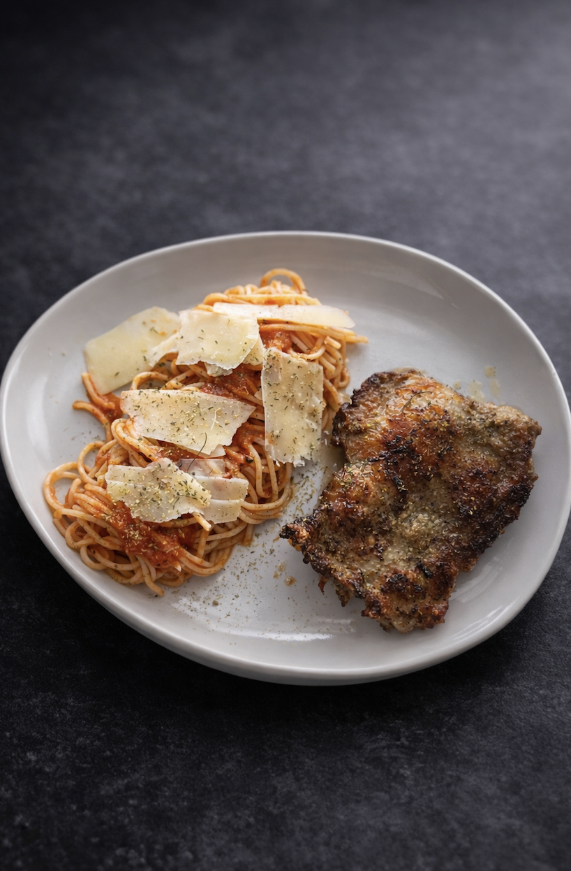 *Da Feira para o Forno (Spaghetti + Pomodoro + 1/2 Galetto + Parmigiano)- R$90