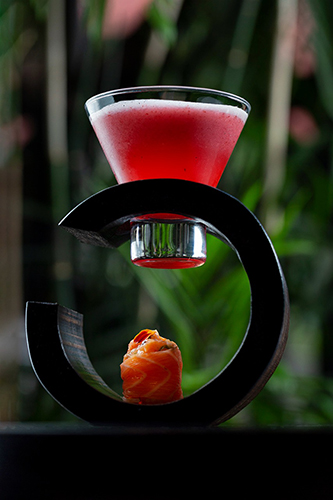 A carta composta por treze drinks autorais inéditos foi desenvolvida com receitas que priorizam ingredientes orientais e que são verdadeiras experiências sensoriais como no caso do Bambu Spicy (Plum sakê, vermute branco, abacaxi, mix de frutas vermelhas, Campari – R$44), que vem acompanhado de Sushi Dyo de Salmão. “A ideia aqui é tomar um gole do drink e na sequência comer o Sushi”, conta Serrano.