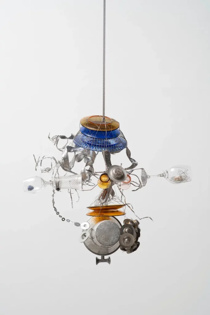 Entre as obras apresentadas estão ainda os móbiles “Disco Voador #32” e “Disco Voador #39”, de Laura Lima, feitos com materiais não convencionais e inspirados em formas futuristas, além do móbile “HBC 428 b/M+W”, de Tomás Saraceno, que parece flutuar no espaço com suas formas geométricas e coloridas. A exposição inclui também trabalhos comissionados, como uma mesa de apoio criada por Claudia Moreira Salles e a pintura “A fantástica viagem de Eduardo Longo”, de Luiz Zerbini.