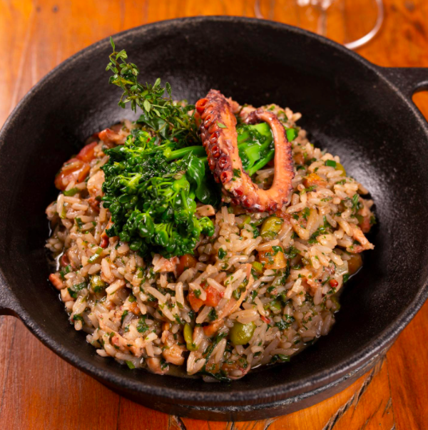 Vale destacar a sessão de arrozes com receitas como Arroz Caldoso de Porco, que leva pernil de porco marinado, assado e desfiado, repolho, fava verde e tomates ao molho do assado, acompanhado de uma fatia de pancetta caramelada R$87. Da parrilla, vale provar o Polvo grelhado no carvão R$135 e as Mini Lulas temperadas com azeite e pimenta R$92. Outro carro-chefe é a Paleta de cordeiro marinada e assada por 8 horas em forno baixa temperatura R$85.