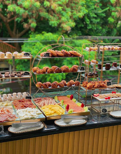 A partir do café da manhã, estão disponíveis sugestões como cuscuz com leite de coco fresco (R$ 33) e queijo manteiga derretido com crosta e mel de engenho (R$ 25), ao lado de croissants recheados, toasts, ovos com diversos preparos e pães de fermentação natural. Uma opção completa é o café nordestino: cuscuz de carne seca com queijo coalho, bolo de rolo e suco natural, por R$ 63.