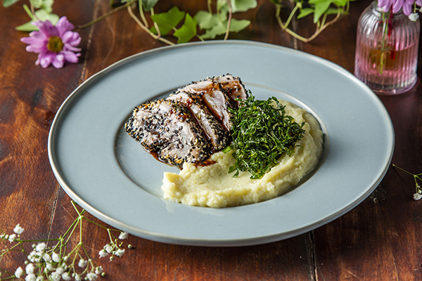 No almoço, as entradas criadas na casa passam a ser oferecidas como o croquete de charque com macaxeira (R$ 36, 6 unidades) e o tartare de abacate acompanhado de chips de batata doce frita no óleo de coco (R$ 45). Dos principais, destaque para o atum selado em gergelim com purê de batata doce, aromatizado com wasabi e crocante de couve e finalizado no molho oriental cítrico (FOTO, R$ 89) e o nhoque de banana da terra ao pomodoro e finalizado com molho pesto funcional (R$ 55). Há também tradicionais como o steak poivre com risoto de parmesão (R$ 89), sanduiches como croque monsieur (presunto, emmental, molho bechamel e parmesão, R$ 44) e chad saucisse (salsicha Frankfurt, creme de queijo gratinado no baguete, R$ 48) e um cardápio executivo, além de salad buffet com proteínas e acompanhamentos.