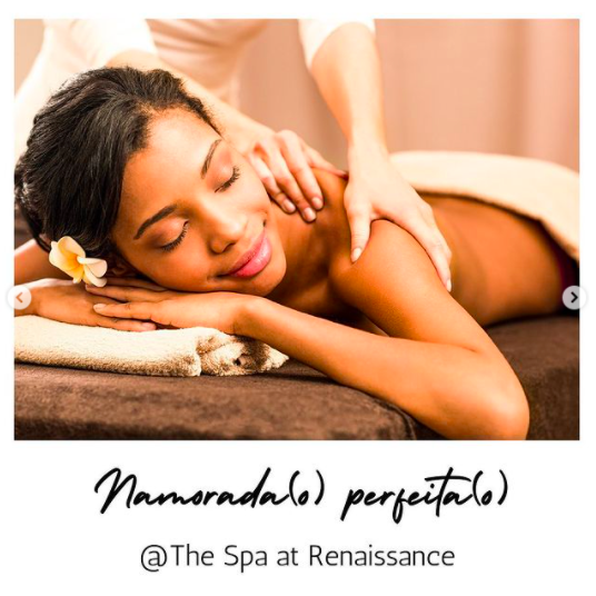 Já os casais que preferem um momento relax ou um refúgio em meio à correria do dia a dia, o The Spa at Renaissance disponibilizou três vouchers presenteáveis: “Amor da Minha Vida”, com ritual de chegada; massagem com pedras quentes, terapia que oferece momentos relaxantes e benéficos para a saúde; tratamento facial Miracle Face, que promove um novo contorno do rosto; e ritual de despedida com taça de espumante. O tratamento tem 2h30 de duração (R$595).