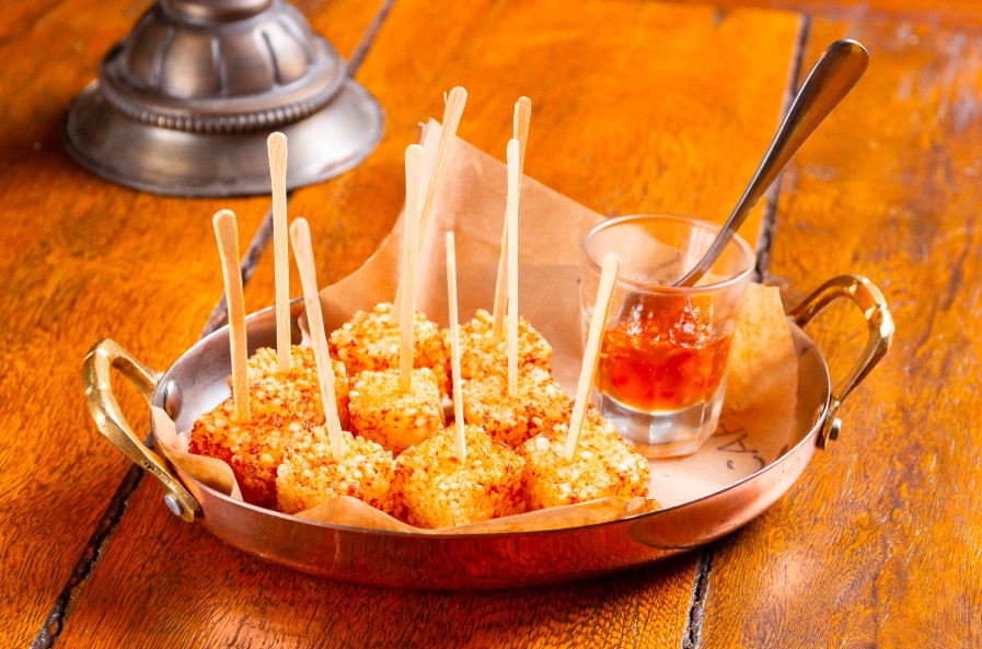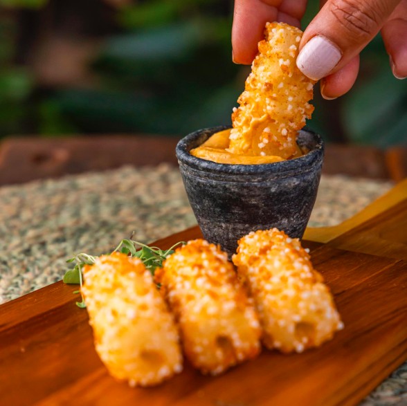Sob o comando da chef Morena Leite, o brasileiríssimo Capim Santo serve pratos com tapioca nas três etapas do seu cardápio. Entre os petiscos tem o Churros de tapioca (R$ 45) com vatapá de frutos-do-mar. Ravioli de tapioca (R$ 79) recheado com queijo Canastra e molho de ervas é a sugestão com o ingrediente no capítulo dos principais. Para encerrar tem o Sonho de tapioca (R$ 42) com creme de bacuri e sorbet de açaí.