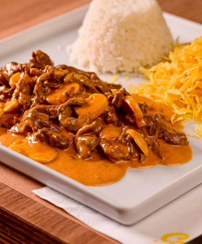 A Pizzaria Camelo, tradicionalmente reconhecida por suas pizzas de massa fina e crocante, também se destaca por seu estrogonofe, considerado um dos melhores da cidade. O prato é preparado com filé mignon suculento, envolto em um molho cremoso e saboroso, servido com arroz branco e batata palha crocante. Há também a opção na versão com peito de frango.