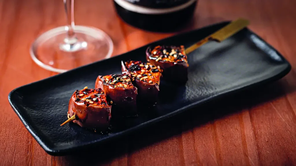 O menu privilegia porções para compartilhar, divididas entre entradas frias, pratos quentes e robatas. Entre as sugestões estão o Trio de Ostras (R$ 59), servido com shots de tequila, whisky japonês e saquê; Ostras Frescas (R$ 35); Salada de Frutos do Mar (R$ 99); e Edamame Spice (R$ 25). Nos quentes, aparecem o Ika Butter (R$ 69), lula na manteiga; Kaki Furai (R$ 59), ostras empanadas; Oniguiri de Salmão (R$ 23) na brasa; e Karaague Clássico (R$ 35). As robatas partem de R$ 15, com opções como lula, panceta e mignon com cebolinha. A carta de drinques, assinada por Ricardo Takahashi, o Japorês, reúne clássicos, highballs (R$ 55) e criações autorais como o Jaspion (R$ 45), com gin, wasabi e limão-siciliano; o National Kid (R$ 79), com whisky Hibiki, vermute seco, Campari e umeshu; o Godzilla (R$ 55), com vodka, matcha e melão; e o Hanami (R$ 45), com saquê e yuzu. A seleção inclui ainda destilados japoneses e cerveja Sapporo, reforçando a proposta de harmonização com o cardápio.