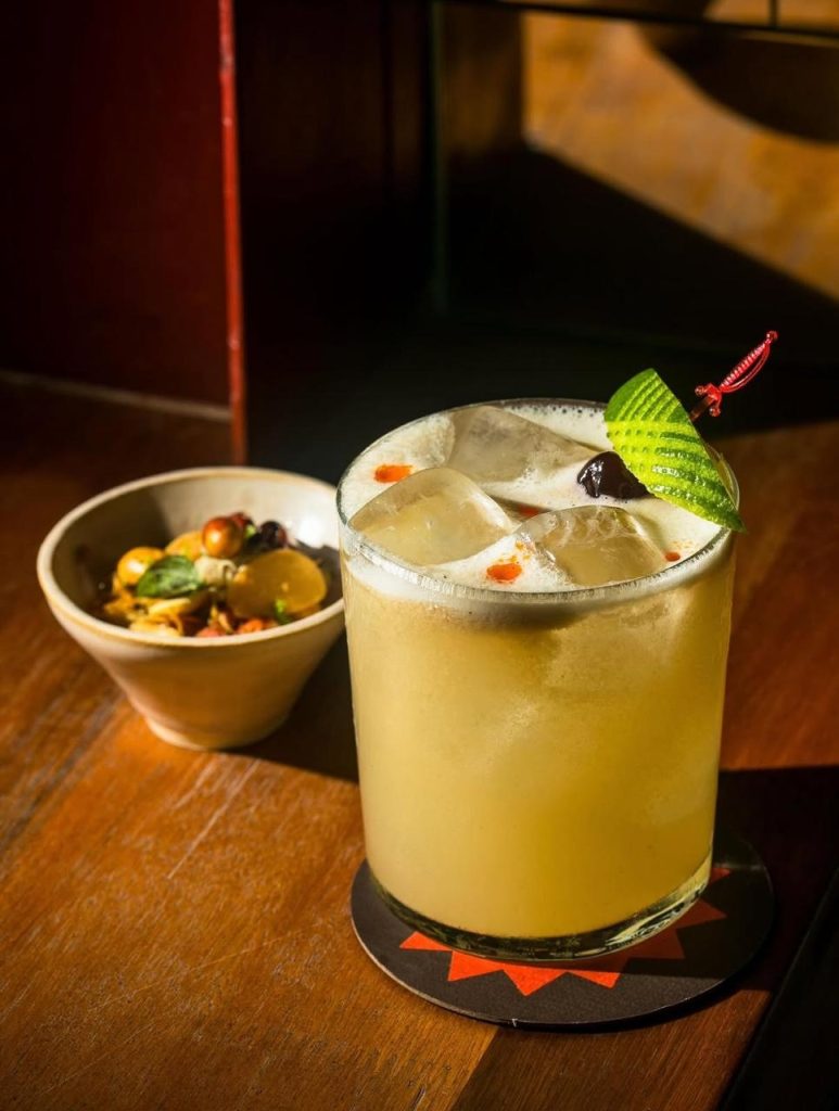 O cardápio é enxuto e voltado ao compartilhamento. Entre as entradas estão as conservas (R$ 28), o amendoim temperado (R$ 18) e a pele de frango crocante (R$ 15). Nos pratos crus, figuram o crudo bovino à moda do Nordeste da Tailândia (R$ 58) e a versão com peixes e frutos do mar sazonais ao molho nahm jim taleh (R$ 68), que equilibra acidez e picância. Os pok pok — pastas preparadas no pilão — incluem a berinjela tostada (R$ 27), enquanto nas frituras se destacam o bolinho de milho com molho de pimenta (R$ 36) e a sambiquira crocante (R$ 39). A carta de drinques, assinada por João Piccolo, reúne clássicos como uísque sour, gim-tônica e daiquiri, além de criações autorais como o Tang Mo (R$ 46), com cachaça branca, melancia e azeitona, e o Cereal Milk (R$ 48), coquetel cremoso inspirado em flocos de milho, pensado para encerrar a refeição em tom adocicado.
