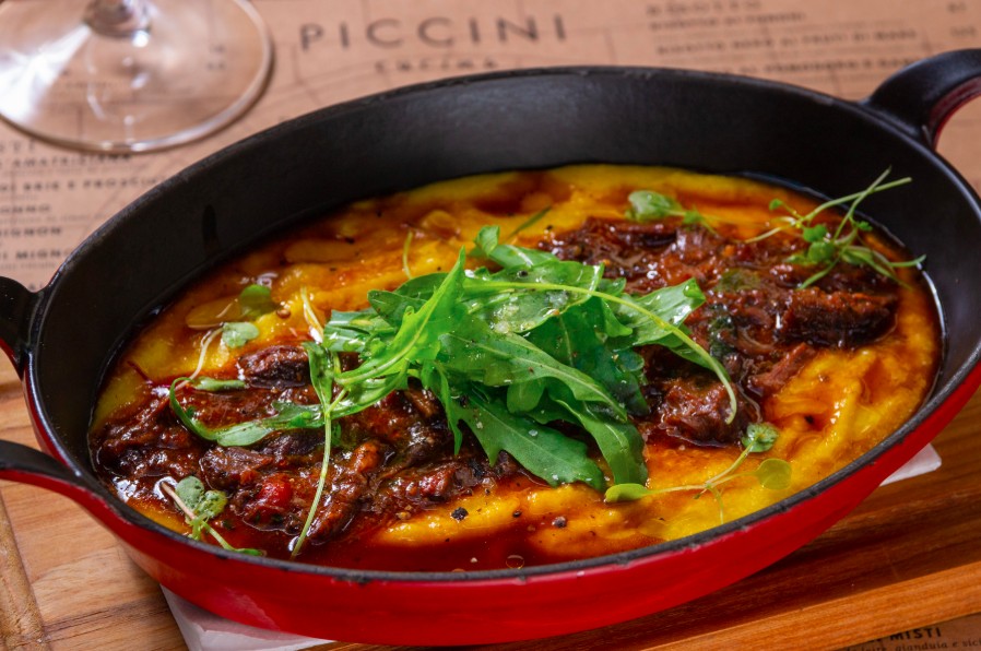 Com uma cozinha que representa todas as regiões da Itália, feito com ingredientes locais e regionais, o Piccini Cuccina tem três sugestões de polentas cremosas em seu cardápio: Polenta Al Funghi Tartufato (R$ 89) é trufada com mix de cogumelos e ovo pochê; Polenta Al Ragu Di Salsiccia (R$ 75) é feita com ragu de linguiça, espinafre e fonduta de Grana Padano e a Polenta Con Coda Di Bue (R$ 79) com ragu de rabada e mini agrião.
