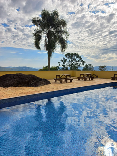 A área exclusiva dos hóspedes, que é um espaço com maior privacidade, conta também com uma piscina.