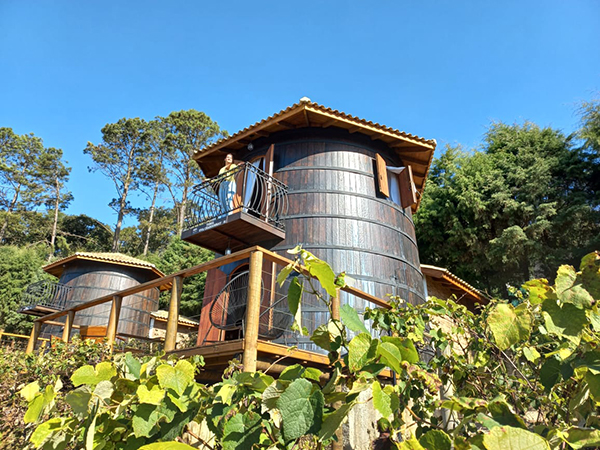 Agora é possível vivenciar uma imersão total no universo enogastronômico que vai muito além da taça. Na Quinta do Olivardo, localizada na estrada da Rota do Vinho, os turistas podem se hospedar num tonel de vinho super aconchegante e romântico para ter uma experiência diferenciada. Enquanto a gente curte um clima serrano no interior de São Paulo, tem a sensação de estar numa tasca em Portugal.