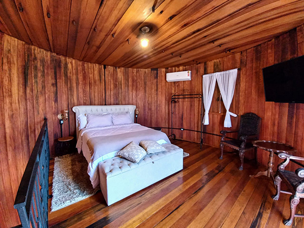 A Quinta também oferece chalés tradicionais que podem acomodar famílias de até 4 pessoas. Mas é nos tonéis, como o Chardonnay e o Touriga, que a gente encontra um ambiente diferenciado instalado entre as parreiras. No Tonel Touriga, os casais têm também a companhia de uma lareira para dias mais friozinhos.