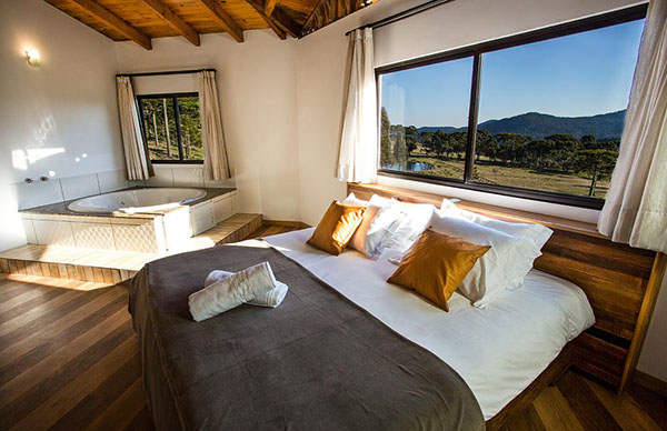 Onde ficar: em meio à mata e à montanha, os quartos da pousada em estilo rústico Refugio Xaxim oferecem vista para as araucárias catarinenses.