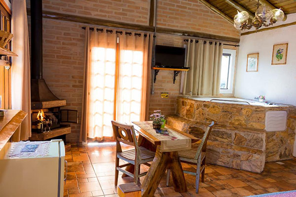 Onde ficar: a Pousada Chales Rancho Caipira oferece acomodações com varandas privativas, lareira e hidromassagem, e casais particularmente gostam da localização.