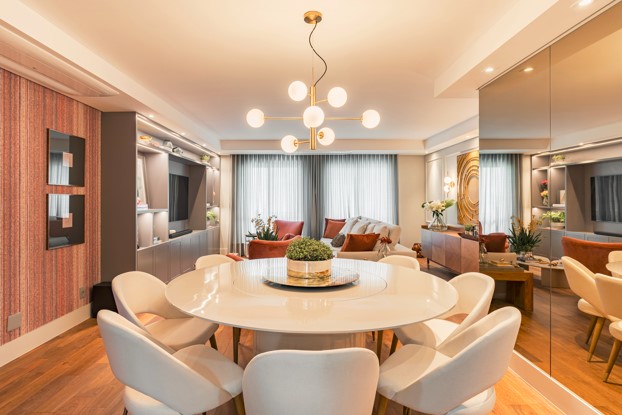 A integração da sala de estar e jantar ampliou o espaço social e proporcionou mais luminosidade.