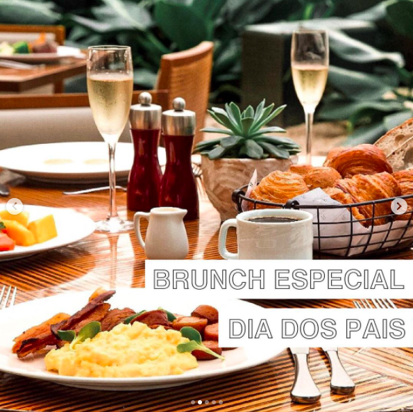 Pensando em aproveitar o momento em família, a sugestão é o Brunch de Dia dos Pais, que acontecerá no próprio domingo, 8 de agosto, das 12h às 15h. É possível degustar das estações de frios, ovos e tapiocas, e iogurtes e cereais, além de sucos naturais, variedade de leites e padaria artesanal. Há também a estação de salada e pratos principais, como: filé mignon, cogumelos e abóbora assada; bacalhau confitado, arroz negro e picles de cebola; e tonarelli cremoso, creme de queijo e crispy de presunto crú. Para amantes dos doces, há opções como torta de morango, bolo de coco, mil folhas de chocolate, crème brûlée de baunilha, frutas do dia e panquecas com doce de leite. O serviço também inclui espumante, vinho (tinto e branco) e cerveja, à vontade (R$ R$193 por pessoa).
