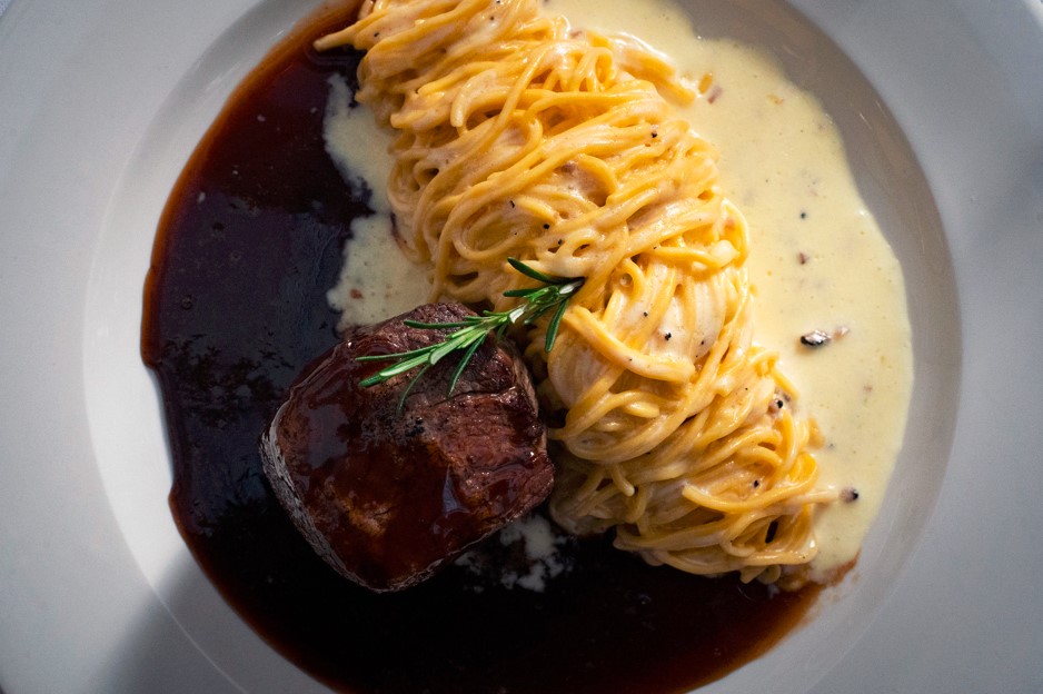 No cardápio há opções de entrada como o Canapé de brioche com steak tartar e caviar (R$ 98); a Polenta italiana Bramata com ragu de fungui trifolati (R$ 78) e os Ovos de cinco gemas com camarão, presunto cru e caviar (R$ 158). Linguini com camarão ao molho de champagne e caviar (R$ 135); Paleta de cordeiro com risoto alla milano (R$ 165), Tornedor de filé mignon com molho jerez e linguini trufado (R$ 147) e Espaguete alla vodka com lagostim (R$ 149) como sugestões de principais. Para finalizar, vale provar o Sorvete de pão de mel com calda de chocolate belga (R$ 65); a Pavlova de 3 limões (R$ 45); o Tiramisù da casa (R$ 49) e a Torta densa de chocolate com amarena (R$ 49). Para acompanhar, uma bem selecionada carta de vinhos com cerca de aproximadamente 120 rótulos, além de opções em taça.