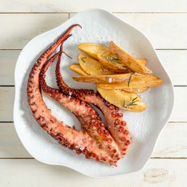 Com um vasto menu, é possível experimentar a tradicional salada grega de tomate, pepino, cebola roxa, pimentão, azeitona e queijo feta. Na lista de pratos principais há o clássico Moussaka, e diversas opções de frutos do mar, mas sem esquecer de opções de carnes De sobremesas opções de dar água na boca como o mousse Myk de três chocolates e o sorvete de galaktoboureko, com massa folheada e pistache caramelados.