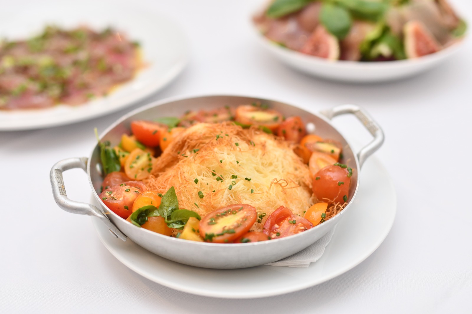 Pioneiro em apresentar a culinária grega contemporânea em São Paulo, o Myk, da chef Mariana Fonseca, oferece um menu especial para o dia 12 de junho. No Dia dos Namorados o jantar, composto por três etapas vai começar com uma entrada para compartilhar: Burrata Assada com Kataifi (massa fina e delicada, amplamente utilizada na culinária grega) Tomates e Manjericão (foto acima). Para o principal, o cardápio tem três opções: Couve-Flor Assada, com purê de favas e pesto (opção vegetariana); ou Paccheri com Camarões e Tomate ou o Filé Mignon Grelhado, servido com batata assada no mel, nozes e azeitonas. Creme Mascarpone com Frutas Vermelhas é a sobremesa para se compartilhar. O menu completo custa R$ 240 por pessoa.