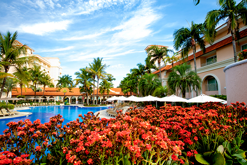 Belíssimo paisagismo, jatos d’água ornamentais e cascata compõem o ambiente, que possui ainda confortáveis espreguiçadeiras e bangalôs. O hóspede pode optar por relaxar ao redor das piscinas ou por refrescar-se em uma aconchegante espreguiçadeira imersa na parte rasa de uma delas.
