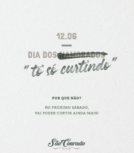 No próximo dia 12 de junho é comemorado o Dia dos Namorados porém, no São Conrado (unidades Pinheiros e Itaim) o dia será para os solteiros!