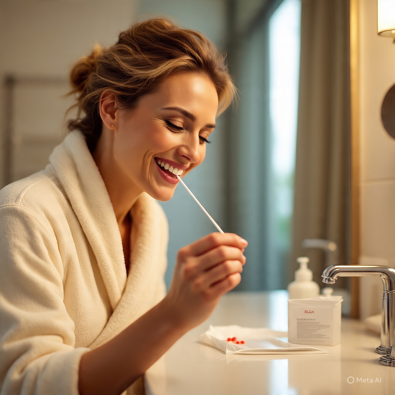 A coleta é simples, indolor e feita no conforto da sua casa: geralmente uma amostra de saliva ou um cotonete passado na parte interna da bochecha já basta.