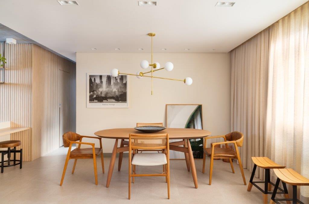 Lucas Blaia e Bruno Moura, do renomado Blaia e Moura Arquitetos, orquestraram esta sinfonia de sofisticação atemporal, traduzindo os desejos da moradora em um lar que transcende as expectativas. Sua expertise e sensibilidade se manifestam em cada detalhe, criando um refúgio urbano que pulsa em harmonia com a alma da sua proprietária.