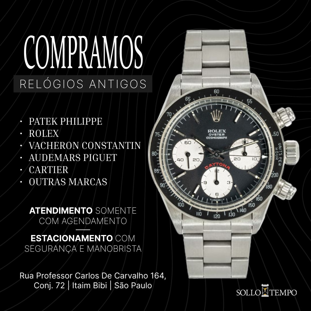 Com mais de 30 anos de experiência, a Sollotempo é especializada na compra, venda e avaliação de relógios de luxo de marcas renomadas, como Patek Philippe, Rolex, Audemars Piguet, Cartier e muitas outras. Localizada no coração do Itaim Bibi, em São Paulo, a Sollotempo se destaca pela sua expertise no mercado e pelo compromisso em oferecer uma experiência única e segura para seus clientes.
