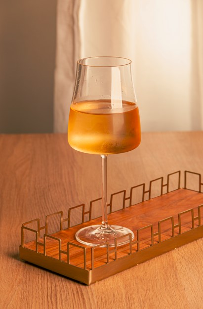 Taça para Champanhe de cristal ecológico martelado Petra Âmbar metalizado 300ml da marca Lyor. @lyorpresentes