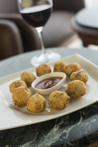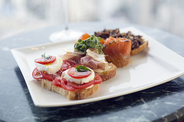 Para acompanhar, saem da cozinha petiscos que acompanham bem o vinho, como bruschettas, suculentos espetinhos de cordeiro ao molho de hortelã, melão com presunto de Parma e redução de vinho do Porto e a tradicional receita italiana de bolinhos de provolone e pancetta, entre outros. Tudo isso com uma vista estonteante da cidade, a 165 metros de altura.