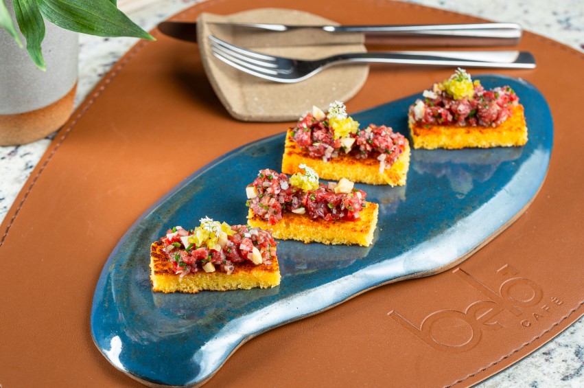 Combinando delicadeza com a modernidade, o restaurante de alma mineira da chef Andreza Luisa, Belô Restaurante, serve Tartare de angus com broa de milho (R$55) é montado com broa de milho com erva doce, steak tartare de angus com castanhas e picles de pimenta cambuci.