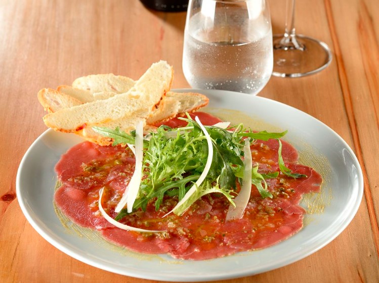 Com atmosfera acolhedora e intimista, o restaurante Enosteria, sob o comando do chef Douglas Benatti, serve o clássico Carpaccio de mignon com mostarda dijon, molho de alcaparras, rúcula e lascas de parmesão (R$64).