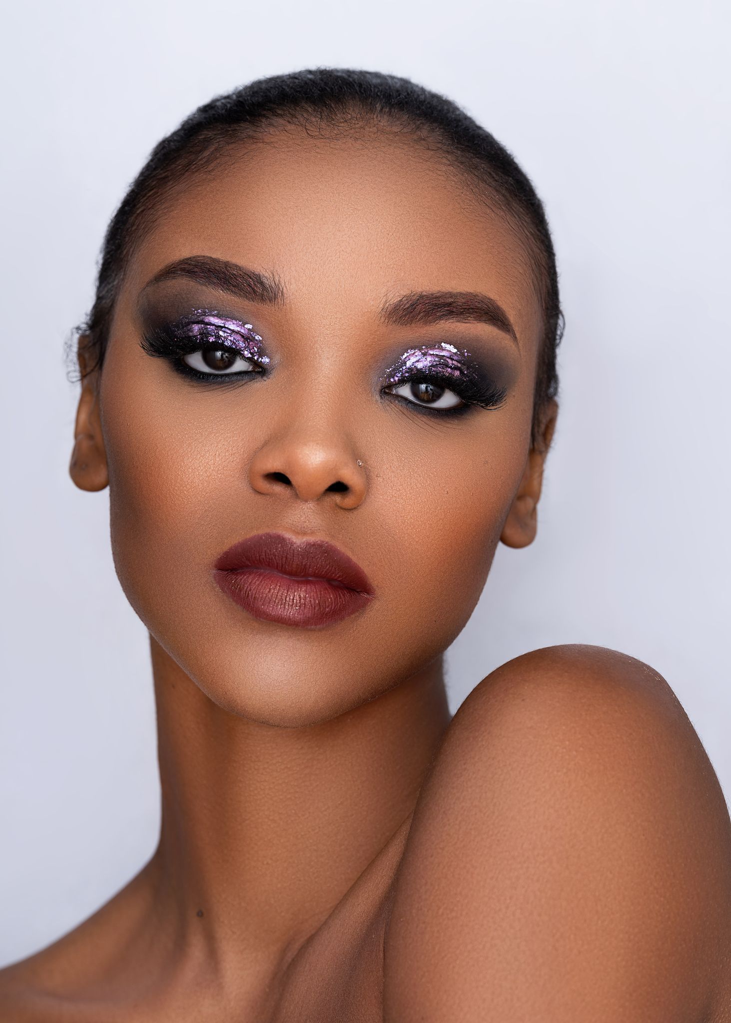 Para peles negras, a aposta de 2025 é a mistura de bases com subtom avermelhado para criar um bronze natural. Marcello lembra que essas peles já têm luminosidade própria e exigem controle inteligente do glow: “É importante evitar o aspecto oleoso. A combinação certa de produtos mantém o brilho bonito e natural.”