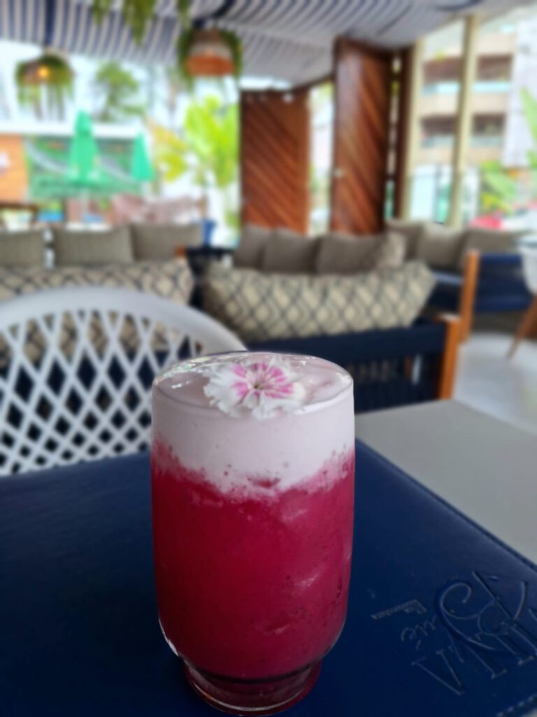 A carta de drinks apresenta criações como o Gin Pink Fresh Summer, o Pitaya Purple a base de vodka e Curaçao Blue, e o Dragon Fresh com rum ouro e espuma de iogurte.