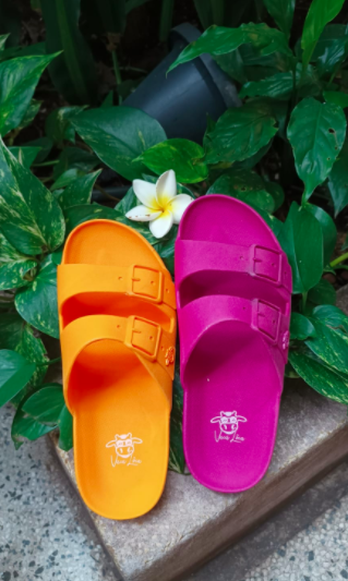 As eco sandálias da Vaca Lôca são feitas à base de óleo de cana de açúcar e foi batizada de Sandália Grace em homenagem à praia caribenha Grace Bay, Turks & Caicos conhecida por suas barreiras de corais coloridas, águas quentes e claras, areia branca e limpa e sol em aproximadamente 319 dias do ano.
