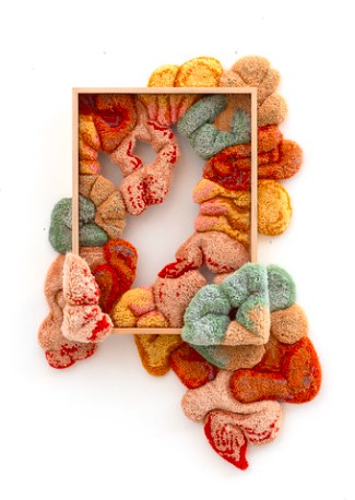 Formada em design, Jessica Costa apresenta sua experiência no tufting e arte têxtil, para o campo das artes visuais. A exposição propõe a tapeçaria como uma prática artística contemporânea e subverte as convenções que legitimam o que é considerado “arte”. A série “Sobejos”, uma das artes expostas, se destaca por questionar o conceito convencional de moldura, estendendo-se pelo chão da galeria em forma de “soft sculptures”. “A exposição questiona a separação histórica entre ‘belas artes’ e artesanato, utilizando a técnica da tufagem para criar objetos escultóricos”, segundo a curadora Ana Paula Cavalcanti Simioni.